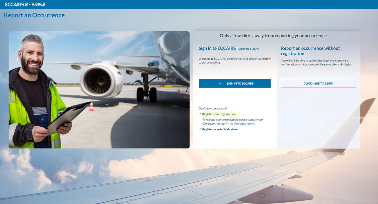- Visit the E2 Reporting Portal at https://e2.aviationreporting.eu/.