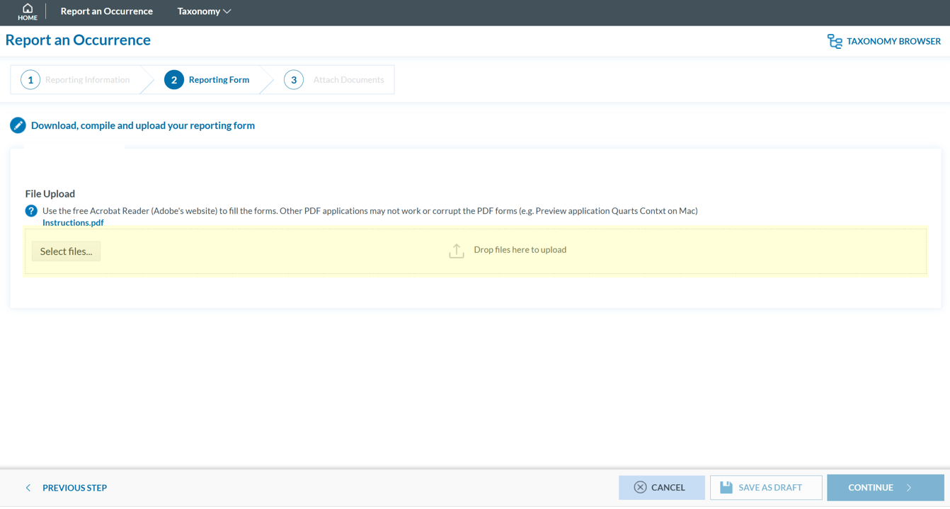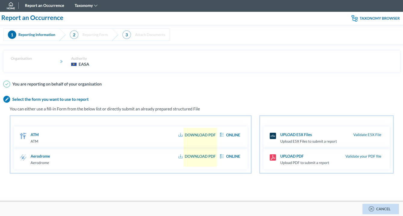 - Click ‘DOWNLOAD PDF’ to obtain the reporting form in PDF format.