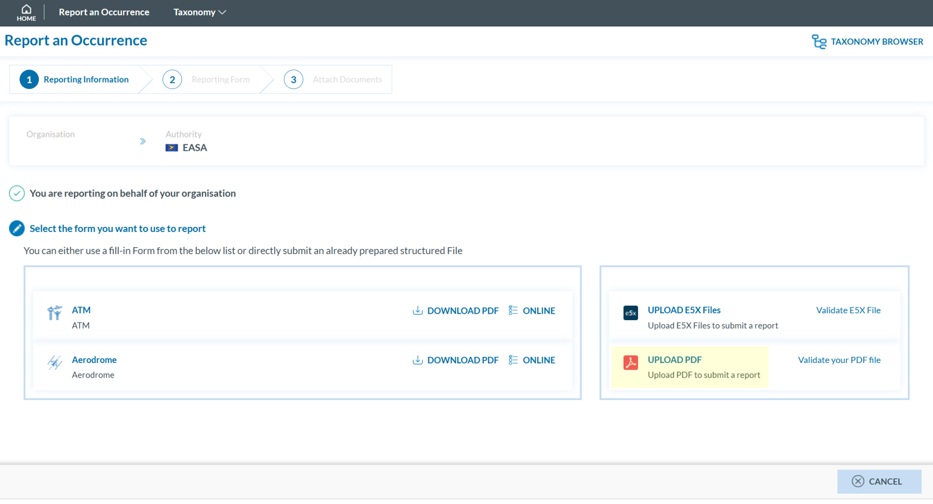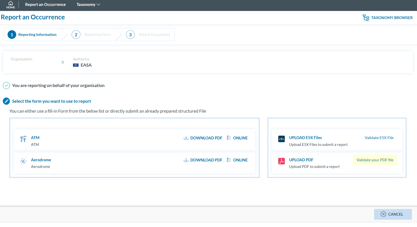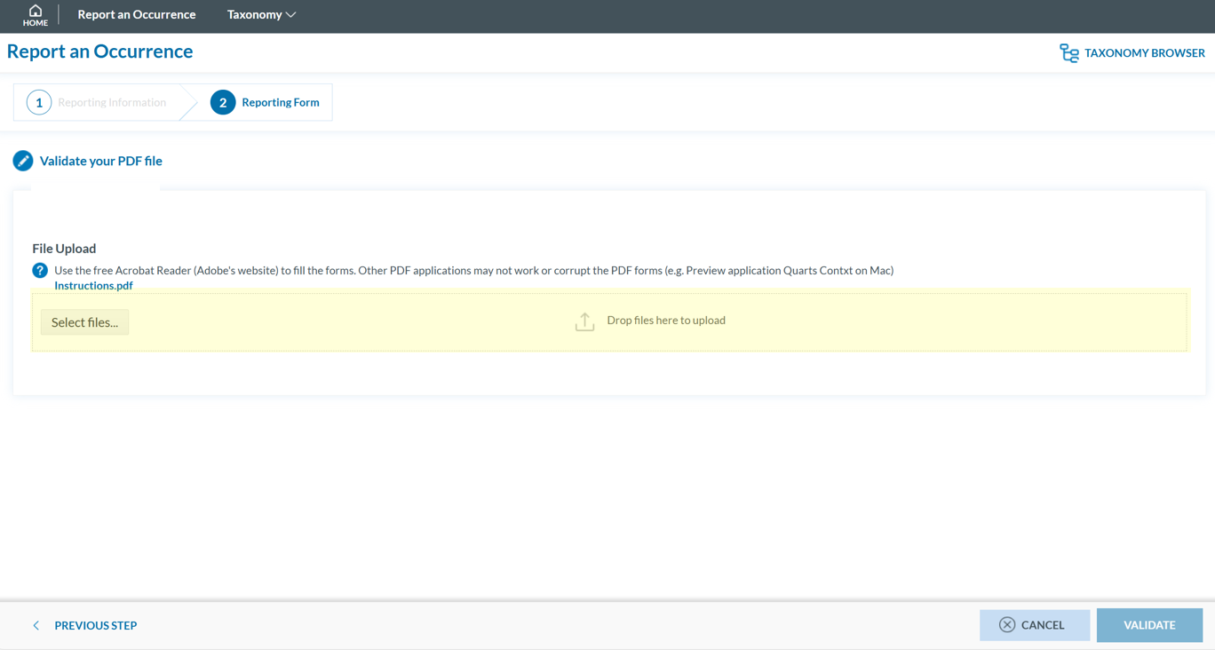This section outlines how to report offline on behalf of your organisaion and how to validate a PDF to submit a report.