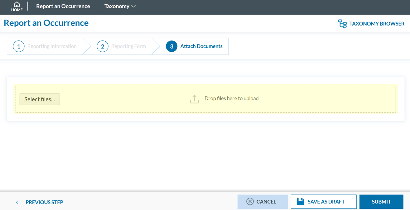 Attach the saved report by clicking the ‘Select files...’ button or by using drag and drop.