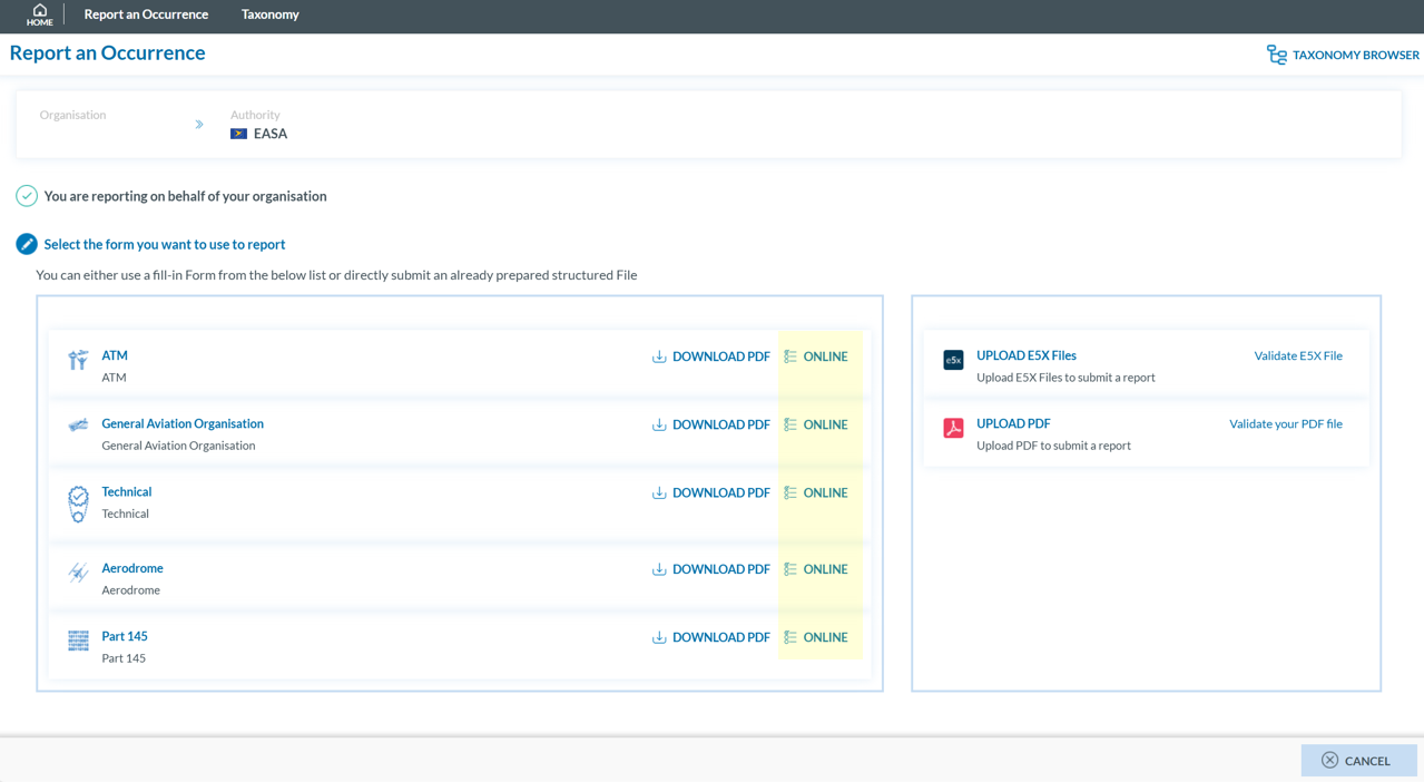 To report offline on behalf of your organisation:- Sign in to access to the 'Report an Occurrence' page.