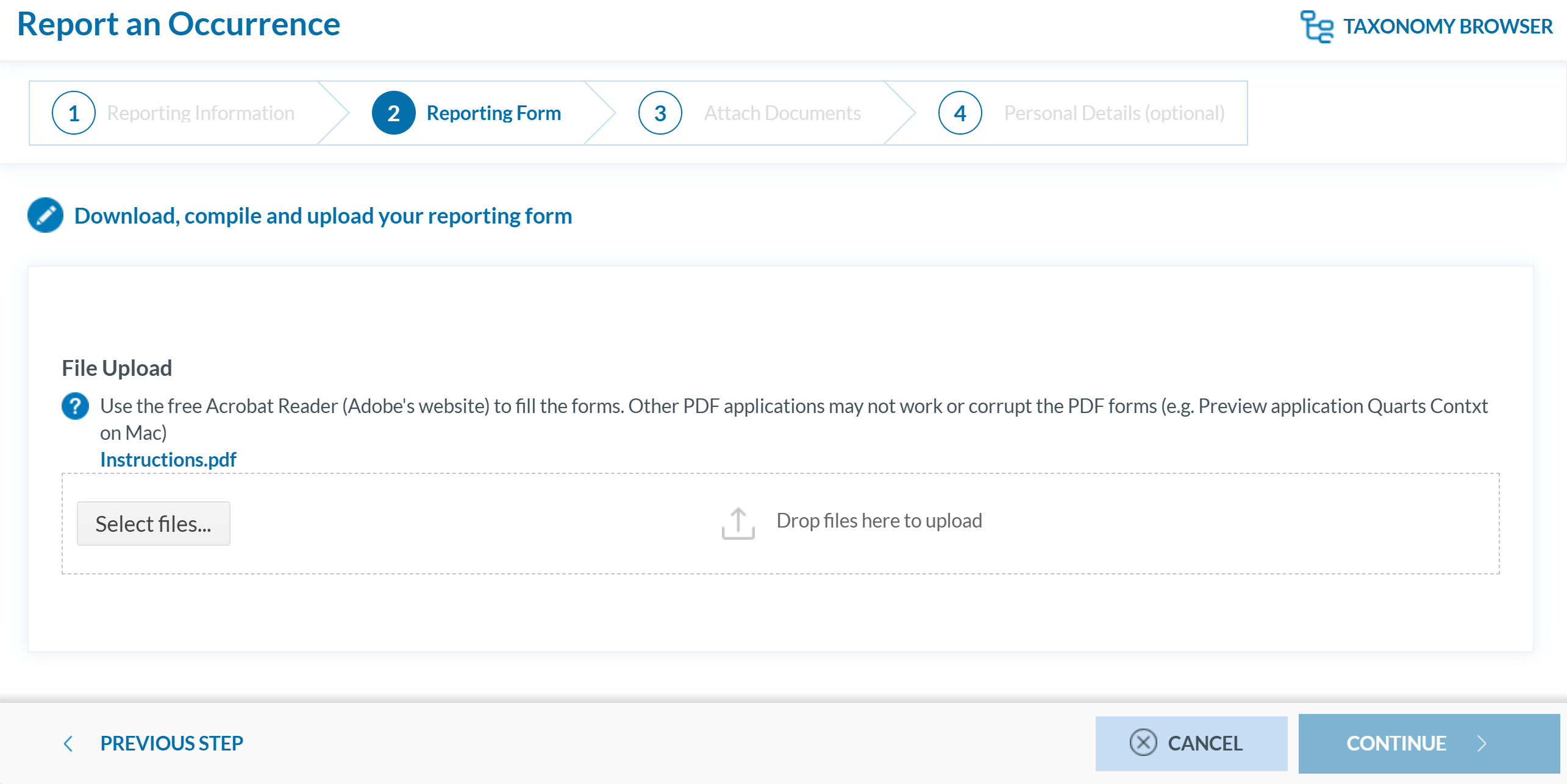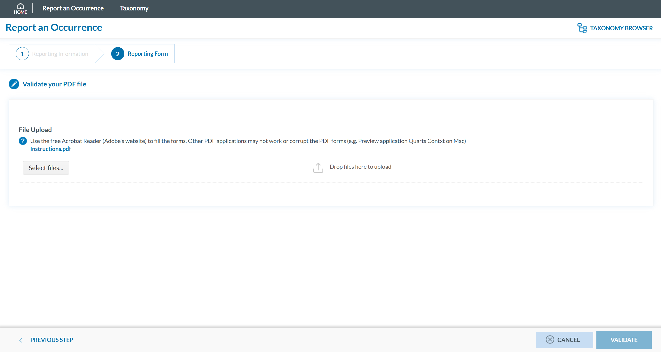 This section outlines how to report offline wihout registraion and how to validate a PDF to submit a report.