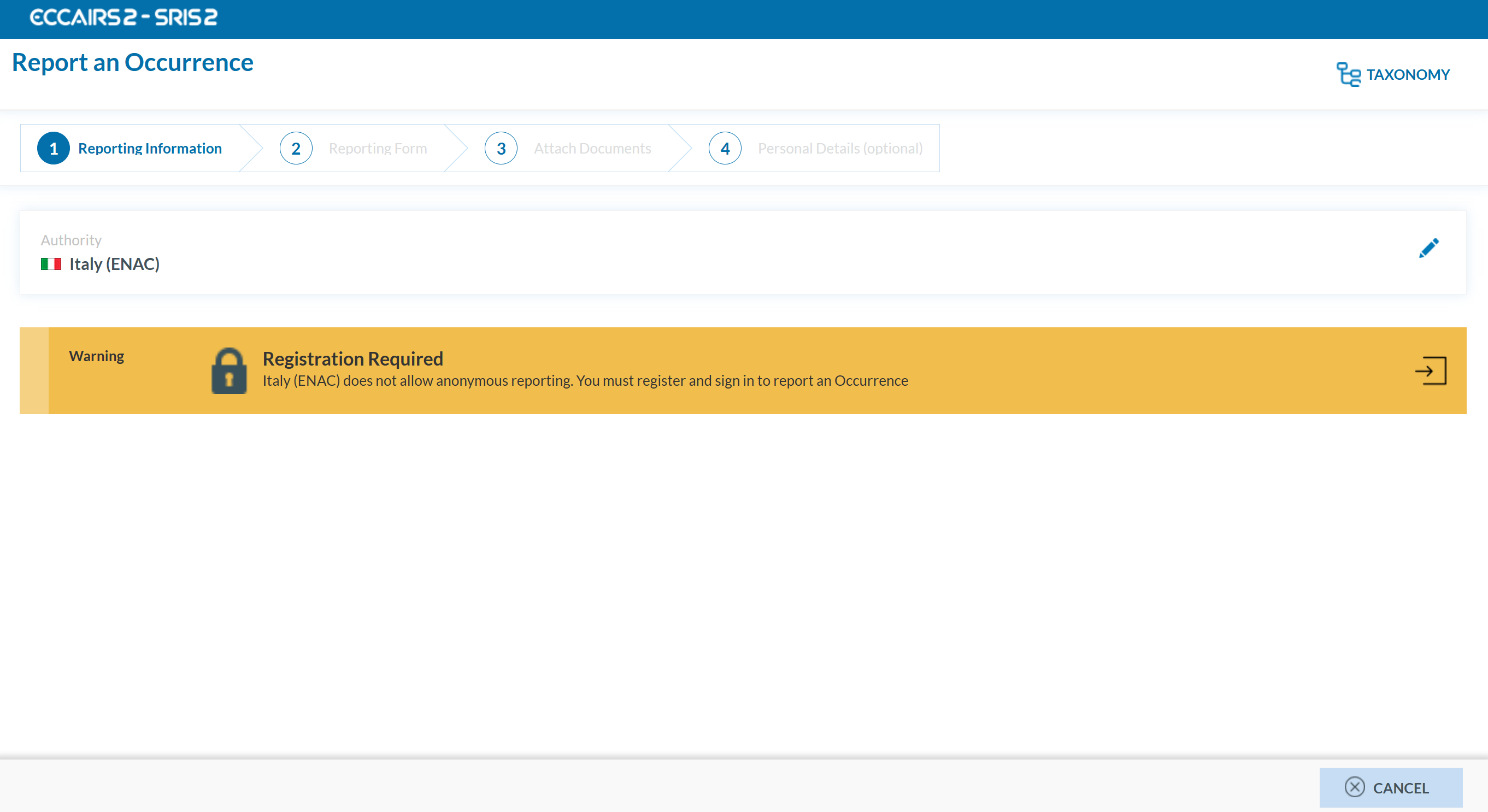 Note that some National Authorities require the reporters to be registered to report an occurrence.