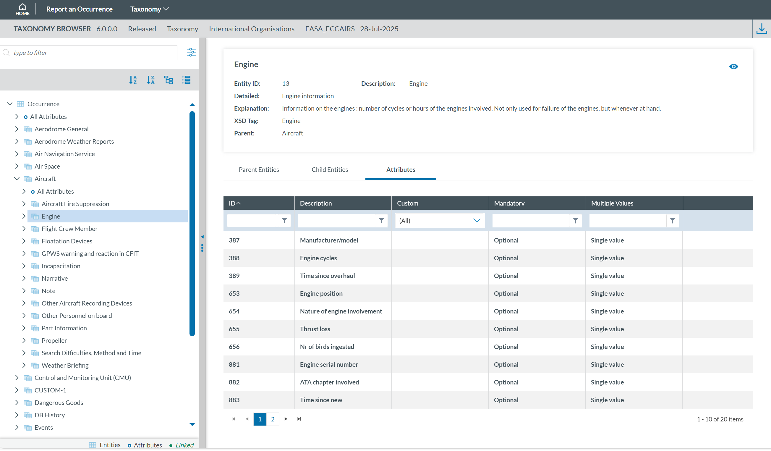 ECCAIRS taxonomy elements are structured as follows: